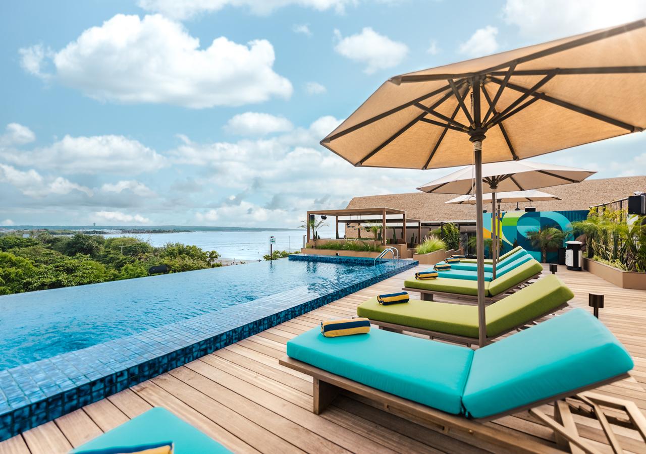 Mamaka by Ovolo: a vibrant beach-front urban resort with a trendy rooftop pool and bar, offering stunning ocean views and unique room designs. Perfect for relaxation, socializing, and exploring nearby attractions. Located in Kuta, Bali, Mamaka by Ovolo is the ultimate destination for two travelers seeking a memorable getaway. Enjoy the stunning pool, stylish bar, and pristine beach just steps away. Rooms feature AC, private balconies, WiFi, and luxurious toiletries. Explore Kuta beach and resort-style facilities, with friendly staff ensuring a pleasant stay. Experience relaxation, adventure, and value at Mamaka by Ovolo.